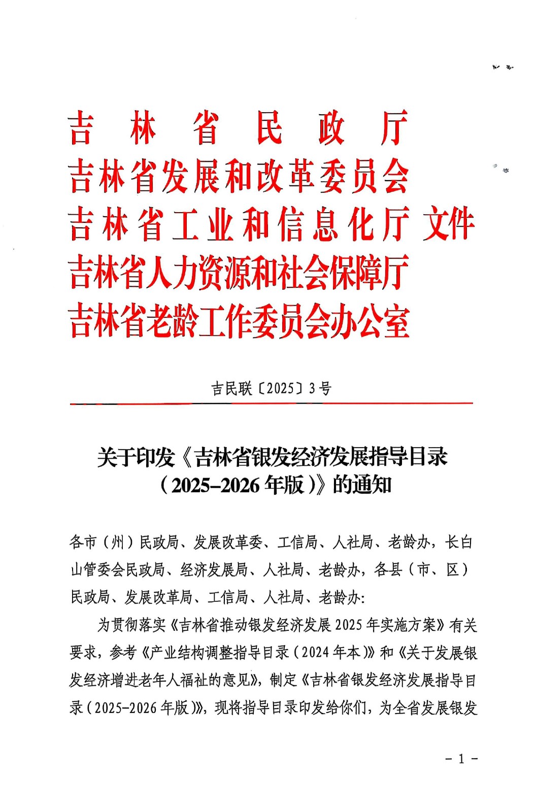 《吉林省银发经济发展指导目录(2025-2026版)》